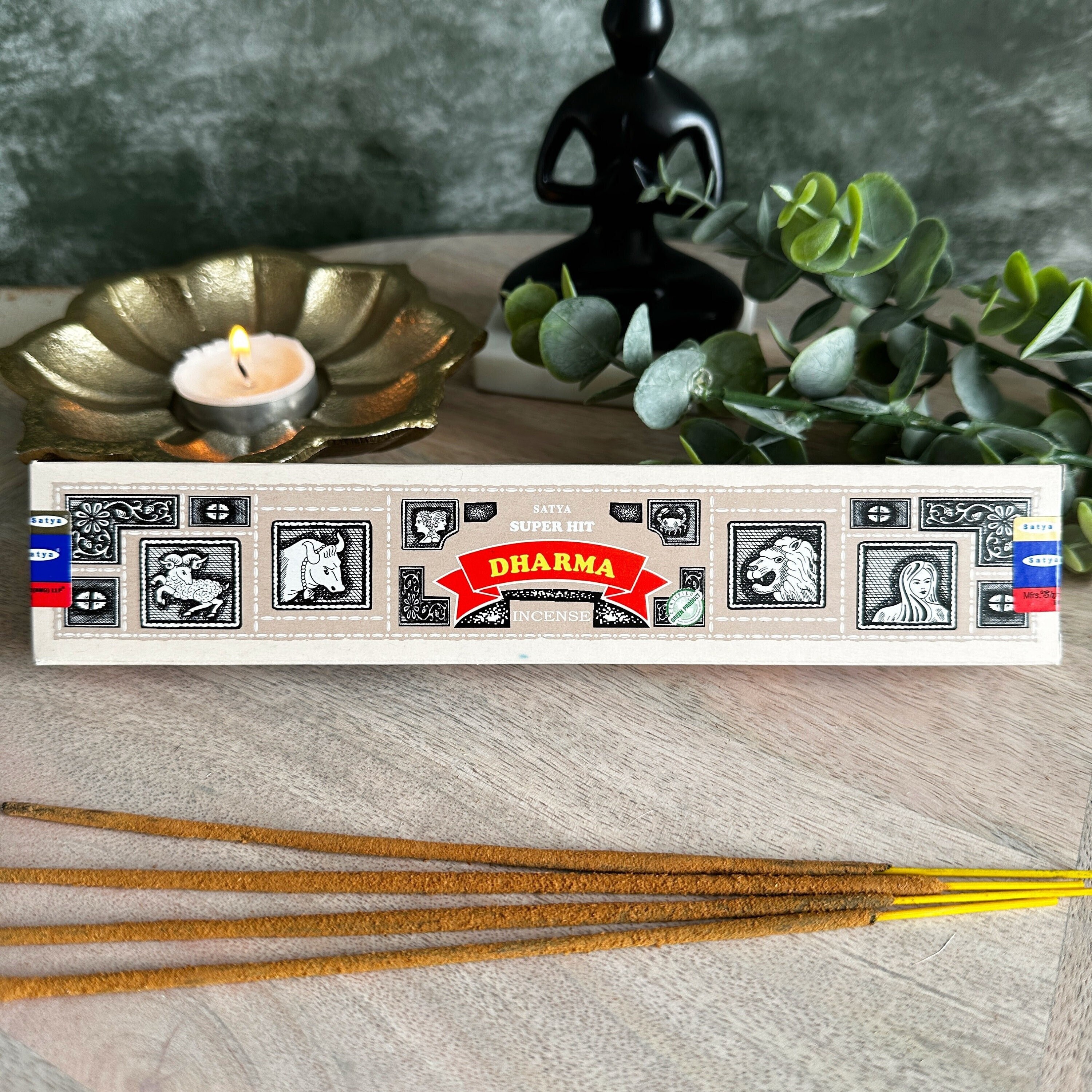 Схвалення Satya Super Hit Dharma — це ароматичні палички, вироблені компанією Satya. Вони являють собою варіацію популярних пахощів Super Hit з додаванням аромату, асоціованого з концепцією дхарми. Дхарма — це концепція в індустрію та кардіологі, яка означає правильну поведінку, чесноту та Куляче розуміння. Аромат цих пахощів, можливо, нагадує про мудрість і гармонію, пов'язані з практикою дхарми.