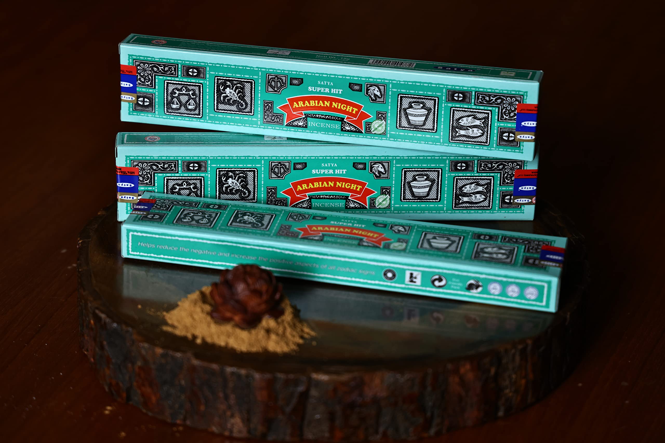 Аромат пахощів Satya Super Hit Arabian Night можна порівняти з атмосферою східних базарів або величних палаців. Він може мати багаті ноти амбри, мускусу, прянощів і деревини, створюючи містичну й екзотичну атмосферу. Цей аромат можна зіставити з ароматом східних пахощів, ладану або мускусу, але з унікальною інтерпретацією, що нагадує про загадковість і розкіш "арабських ночей".