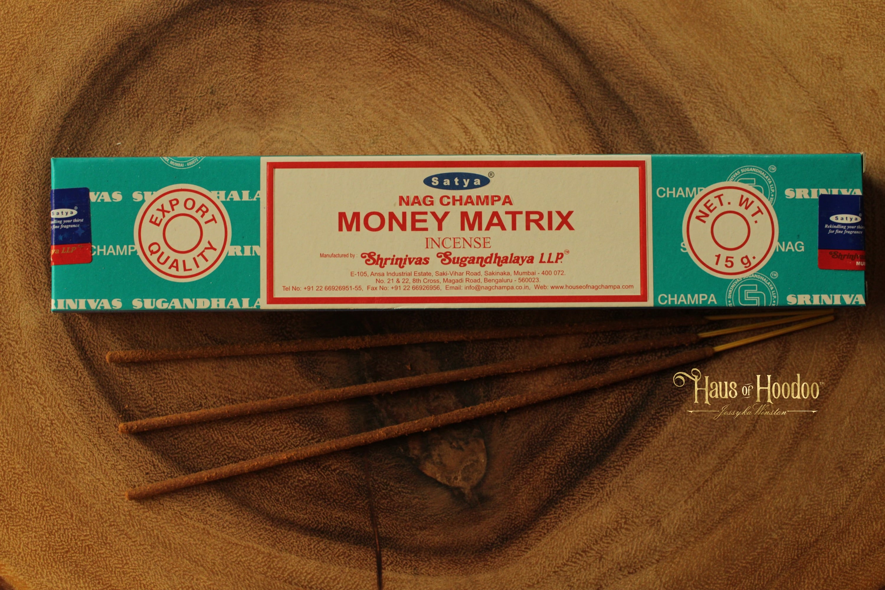 Хоча конкретний аромат пахощів Satya Nag Champa Money Matrix Incense не описаний детально, його можна імовірно порівняти з ароматами, які традиційно асоціюються з багатством і процвітанням в ароматерапії. Такі аромати зазвичай містять: